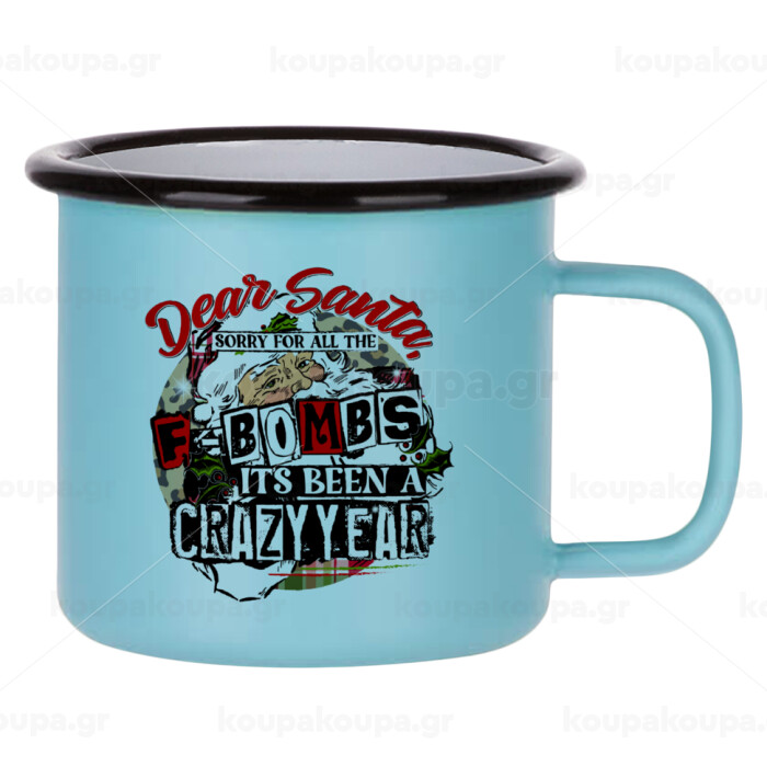 Dear Santa, sorry for all the F-bombs, Κούπα Μεταλλική εμαγιέ ΜΑΤ σιέλ 360ml
