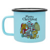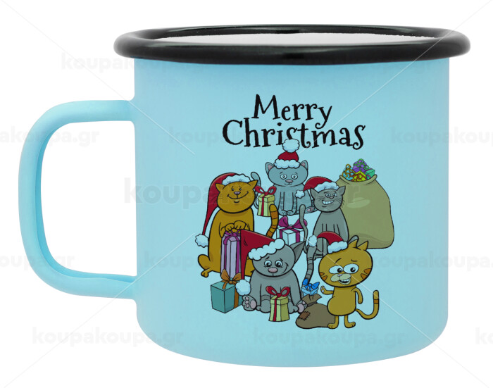 Merry Christmas Cats, Κούπα Μεταλλική εμαγιέ ΜΑΤ σιέλ 360ml