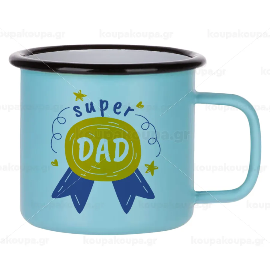 Μπαμπά είσαι για μετάλλιο, Κούπα Μεταλλική εμαγιέ ΜΑΤ σιέλ 360ml
