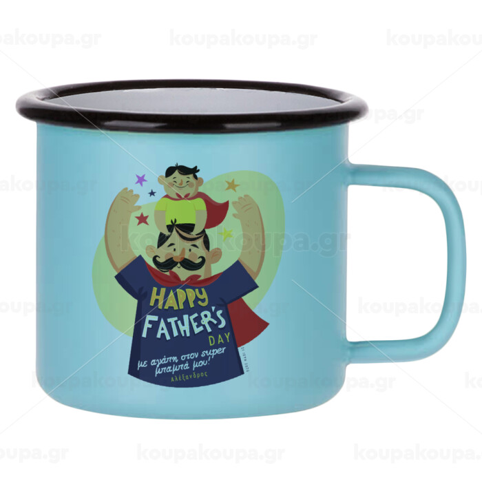 Happy Fathers Day με όνομα, Κούπα Μεταλλική εμαγιέ ΜΑΤ σιέλ 360ml