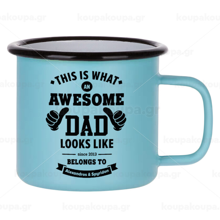 This is what an Awesome DAD looks like, Κούπα Μεταλλική εμαγιέ ΜΑΤ σιέλ 360ml