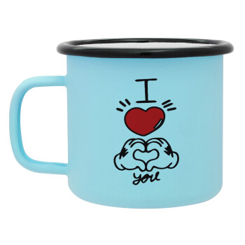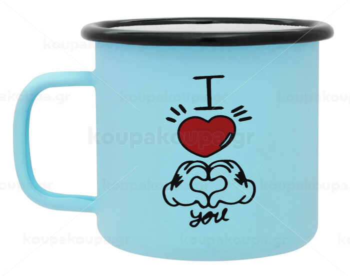 comics hands love, Κούπα Μεταλλική εμαγιέ ΜΑΤ σιέλ 360ml