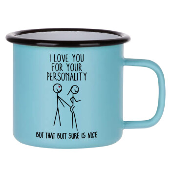 I Love you for your personality, Κούπα Μεταλλική εμαγιέ ΜΑΤ σιέλ 360ml