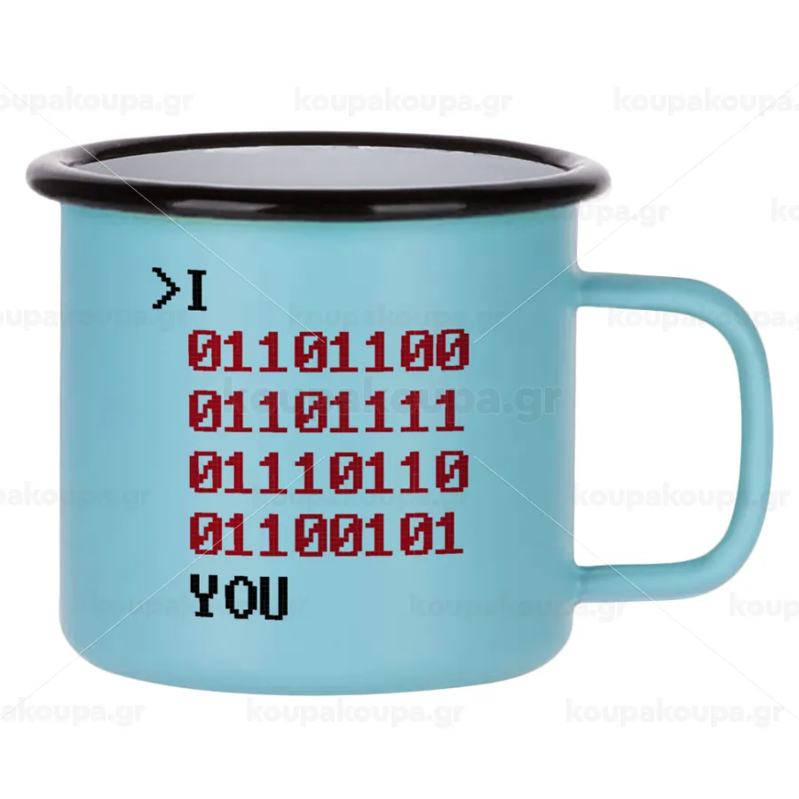 I .... YOU, binary secret MSG, Κούπα Μεταλλική εμαγιέ ΜΑΤ σιέλ 360ml