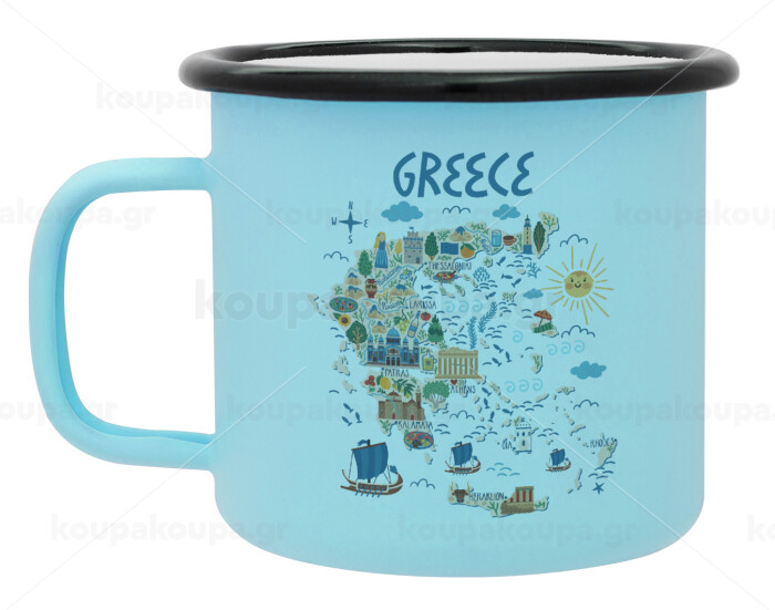 Greek map, Κούπα Μεταλλική εμαγιέ ΜΑΤ σιέλ 360ml