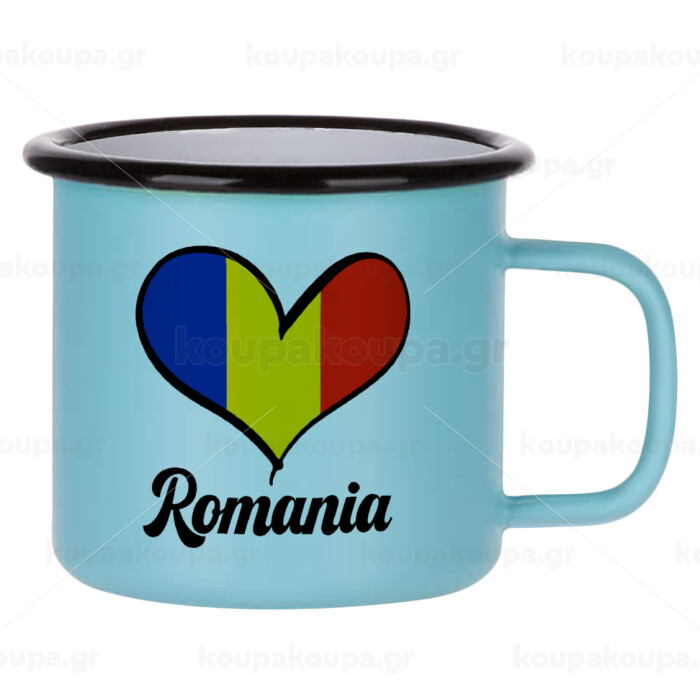 Romania flag, Κούπα Μεταλλική εμαγιέ ΜΑΤ σιέλ 360ml