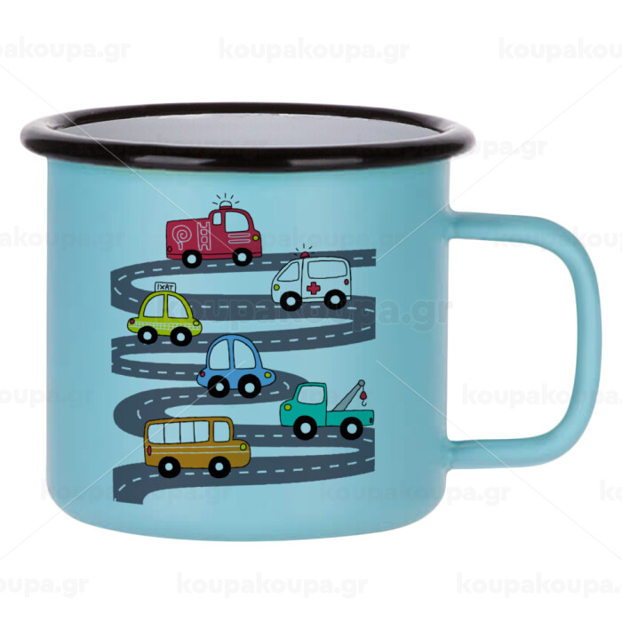 Hand drawn childish set with cars, Κούπα Μεταλλική εμαγιέ ΜΑΤ σιέλ 360ml