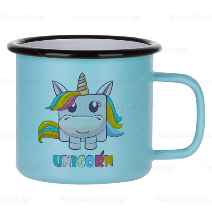 Unicorns cube, Κούπα Μεταλλική εμαγιέ ΜΑΤ σιέλ 360ml