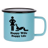 Happy Wife, Happy Life, Κούπα Μεταλλική εμαγιέ ΜΑΤ σιέλ 360ml