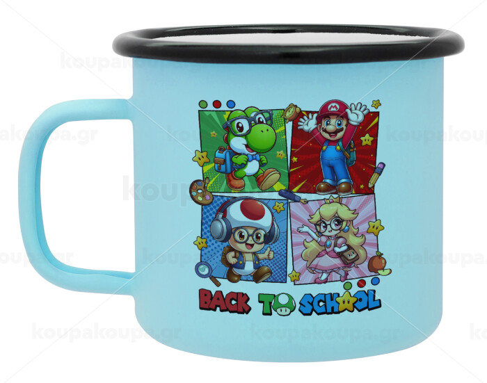Back to the School Mario & Friends, Κούπα Μεταλλική εμαγιέ ΜΑΤ σιέλ 360ml