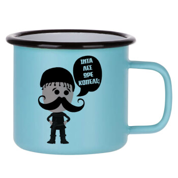 Κρητικός "Ίντα λες ωρέ κοπέλι", Κούπα Μεταλλική εμαγιέ ΜΑΤ σιέλ 360ml