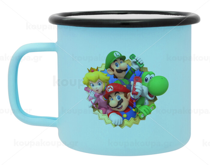 Super mario and Friends, Κούπα Μεταλλική εμαγιέ ΜΑΤ σιέλ 360ml