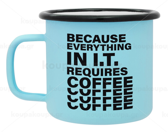 Because everything in I.T. requires coffee, Κούπα Μεταλλική εμαγιέ ΜΑΤ σιέλ 360ml