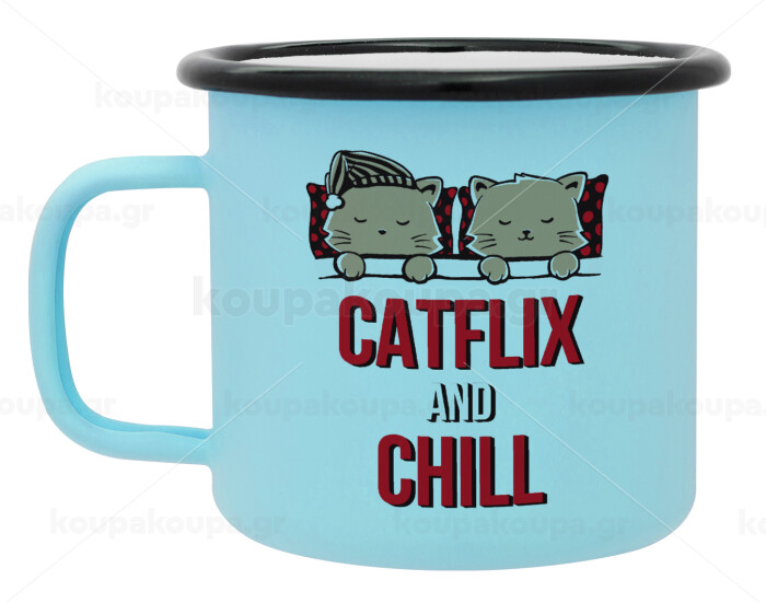 Catflix and Chill, Κούπα Μεταλλική εμαγιέ ΜΑΤ σιέλ 360ml