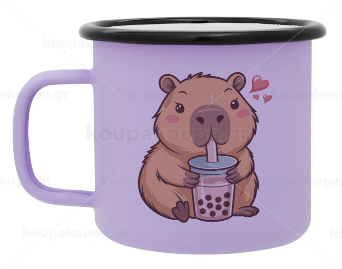 Capybara Bubble Tea, Κούπα Μεταλλική εμαγιέ ΜΑΤ Light Pastel Purple 360ml