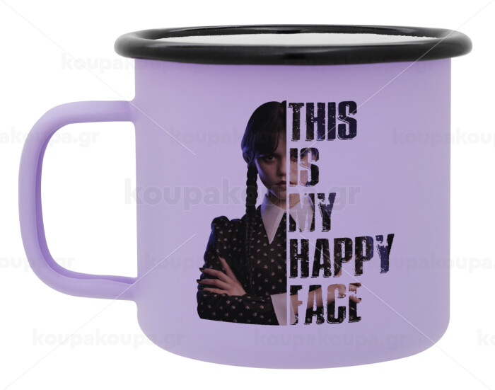 Wednesday, This is my happy face, Κούπα Μεταλλική εμαγιέ ΜΑΤ Light Pastel Purple 360ml