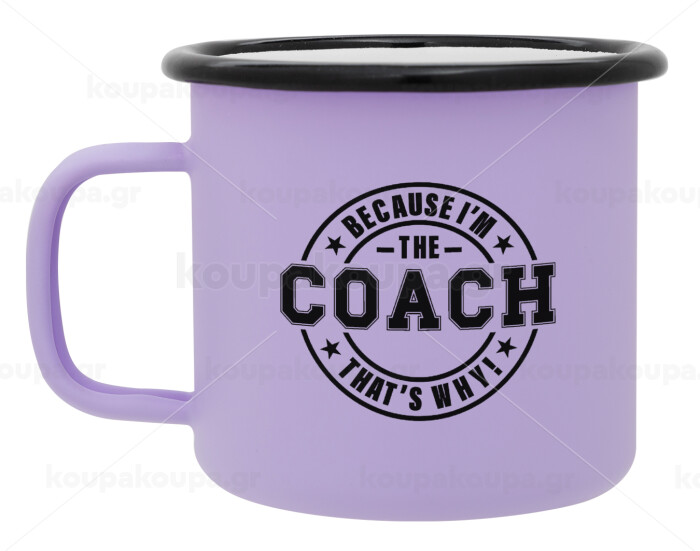 Because i'm the Coach, Κούπα Μεταλλική εμαγιέ ΜΑΤ Light Pastel Purple 360ml