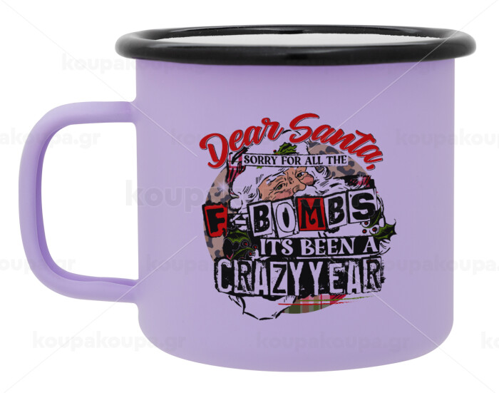 Dear Santa, sorry for all the F-bombs, Κούπα Μεταλλική εμαγιέ ΜΑΤ Light Pastel Purple 360ml