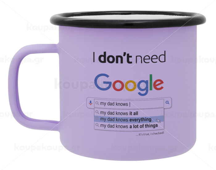 I don't need Google my dad..., Κούπα Μεταλλική εμαγιέ ΜΑΤ Light Pastel Purple 360ml