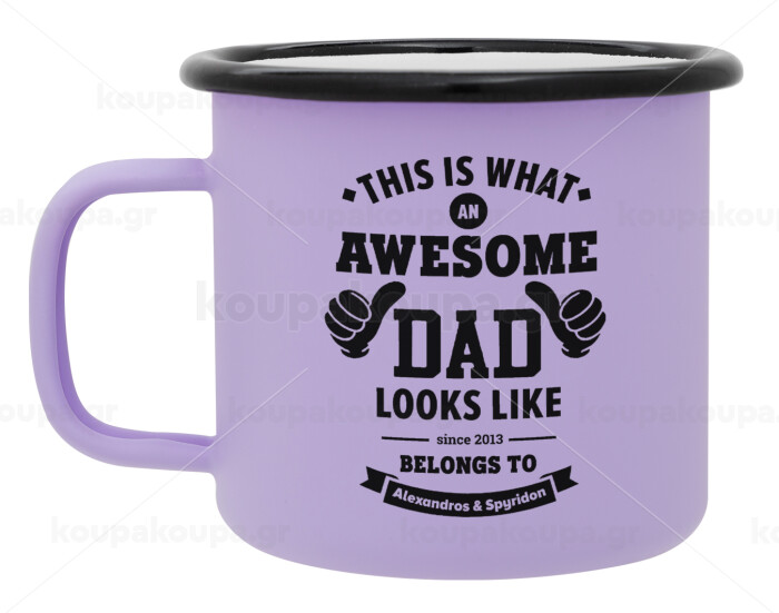 This is what an Awesome DAD looks like, Κούπα Μεταλλική εμαγιέ ΜΑΤ Light Pastel Purple 360ml