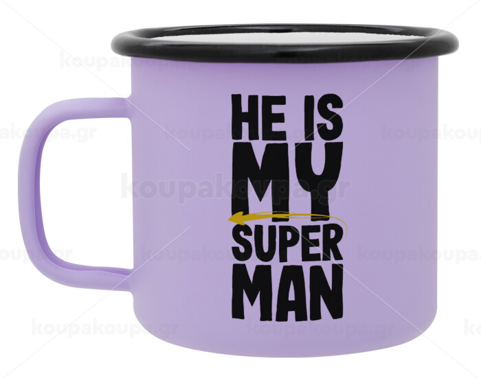 He is my superman, Κούπα Μεταλλική εμαγιέ ΜΑΤ Light Pastel Purple 360ml