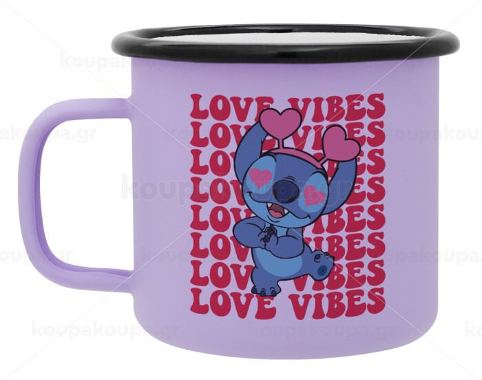 Lilo & Stitch Love vibes, Κούπα Μεταλλική εμαγιέ ΜΑΤ Light Pastel Purple 360ml
