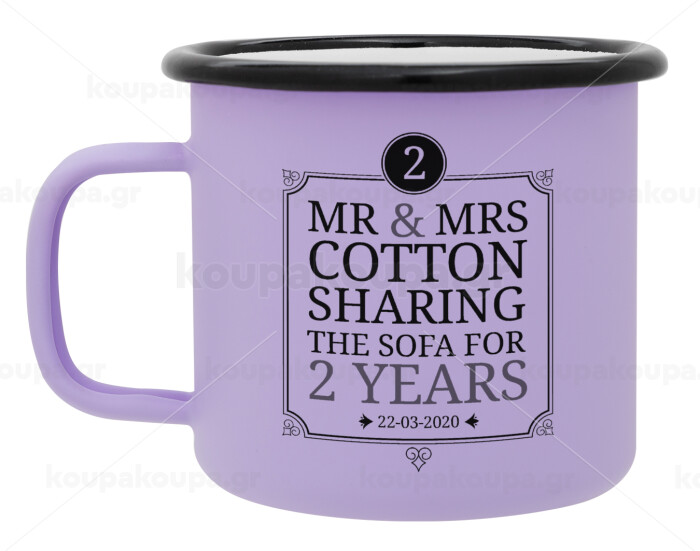 Mr & Mrs Sharing the sofa, Κούπα Μεταλλική εμαγιέ ΜΑΤ Light Pastel Purple 360ml