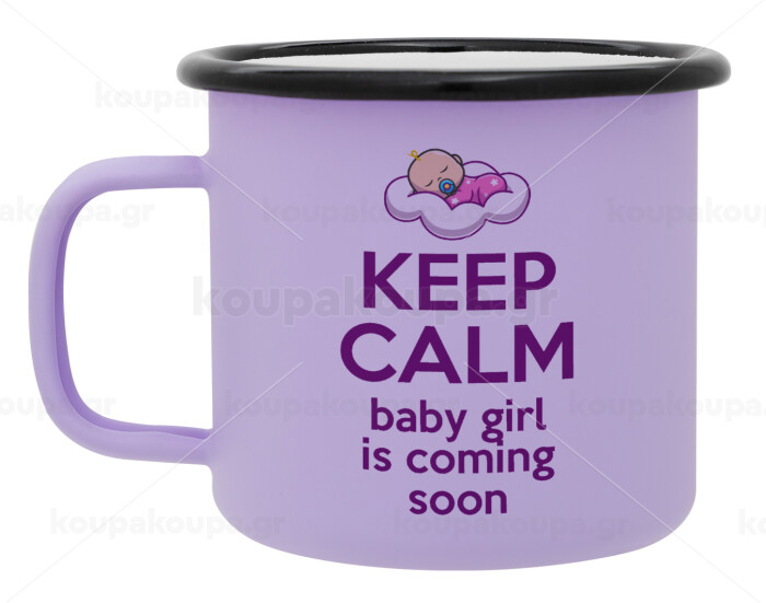 KEEP CALM baby girl is coming soon!!!, Κούπα Μεταλλική εμαγιέ ΜΑΤ Light Pastel Purple 360ml