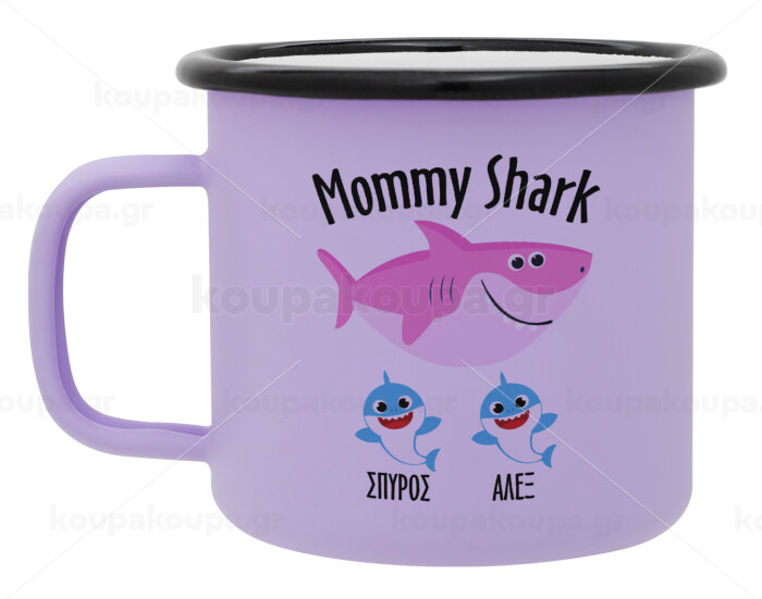 Mommy Shark (με ονόματα παιδικά), Κούπα Μεταλλική εμαγιέ ΜΑΤ Light Pastel Purple 360ml