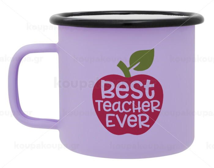 best teacher ever, apple!, Κούπα Μεταλλική εμαγιέ ΜΑΤ Light Pastel Purple 360ml