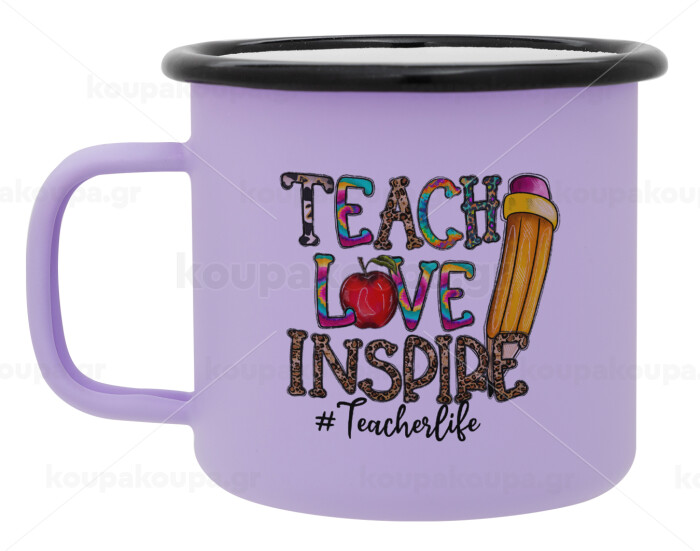 Teach, Love, Inspire, Κούπα Μεταλλική εμαγιέ ΜΑΤ Light Pastel Purple 360ml