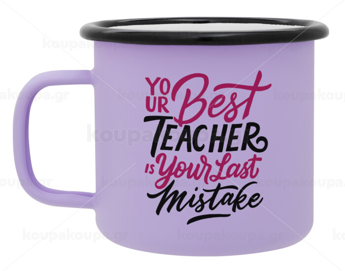 Typography quotes your best teacher is your last mistake, Κούπα Μεταλλική εμαγιέ ΜΑΤ Light Pastel Purple 360ml