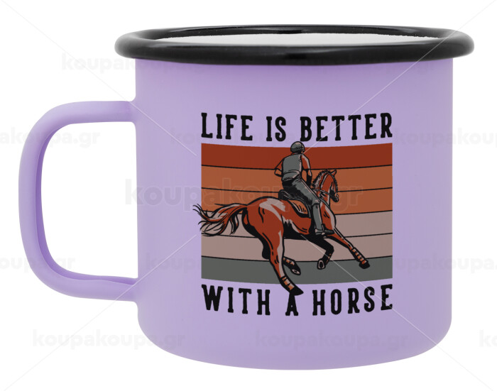 Life is Better with a Horse, Κούπα Μεταλλική εμαγιέ ΜΑΤ Light Pastel Purple 360ml