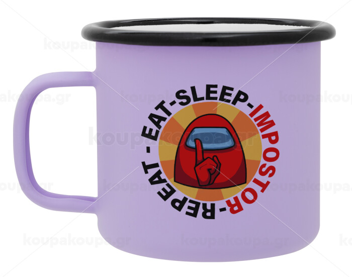 Among US Eat Sleep Repeat Impostor, Κούπα Μεταλλική εμαγιέ ΜΑΤ Light Pastel Purple 360ml