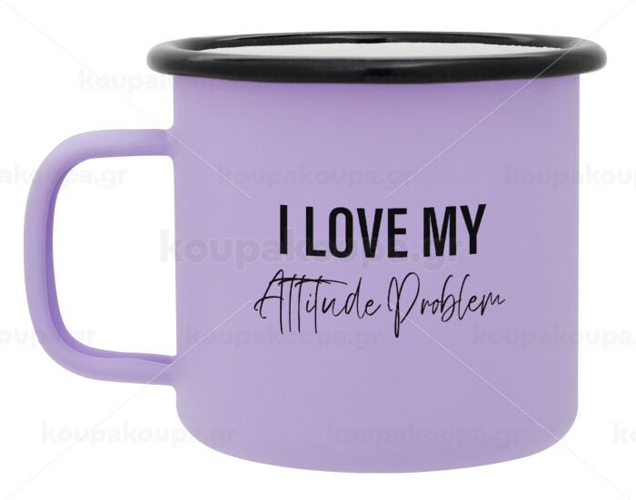 I love my attitude problem, Κούπα Μεταλλική εμαγιέ ΜΑΤ Light Pastel Purple 360ml