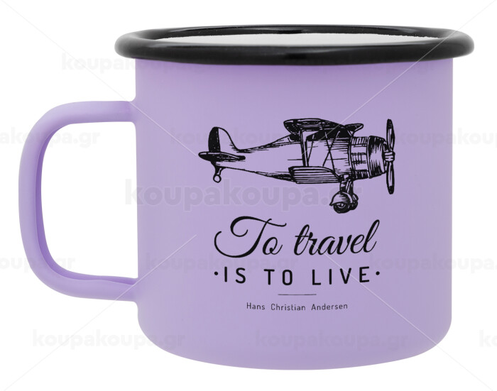 To travel is to live, Κούπα Μεταλλική εμαγιέ ΜΑΤ Light Pastel Purple 360ml