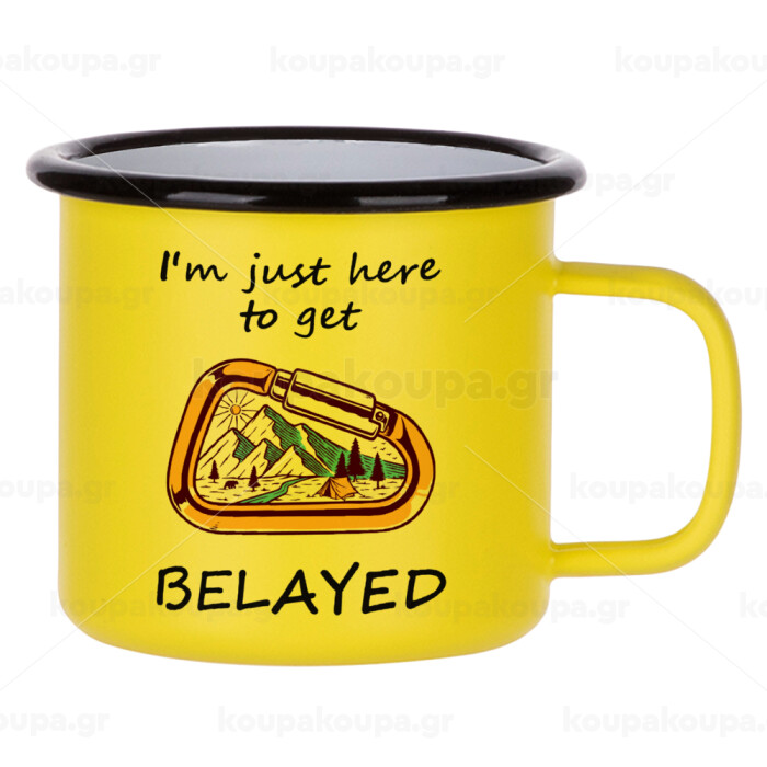 I'm just here to get Belayed, Metallic enamel MATT Yellow cup 360ml
