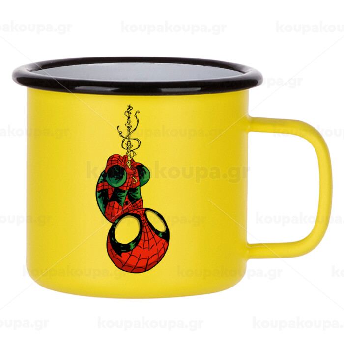 Spiderman upside down, Metallic enamel MATT Yellow cup 360ml