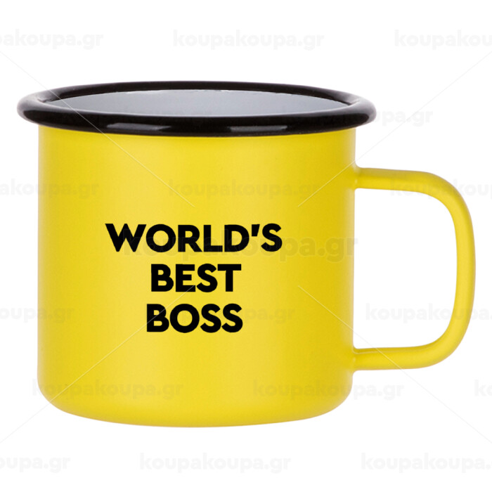 World's best boss, Metallic enamel MATT Yellow cup 360ml