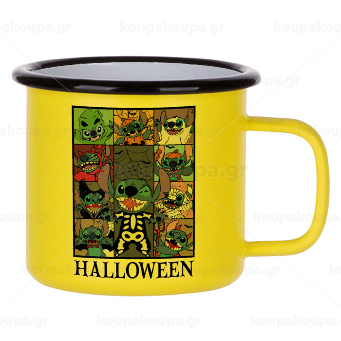 Stitch Halloween, Metallic enamel MATT Yellow cup 360ml