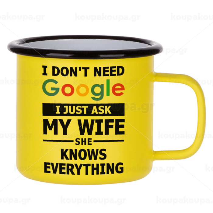 I don't need Google, just ask my WIFE, Metallic enamel MATT Yellow cup 360ml
