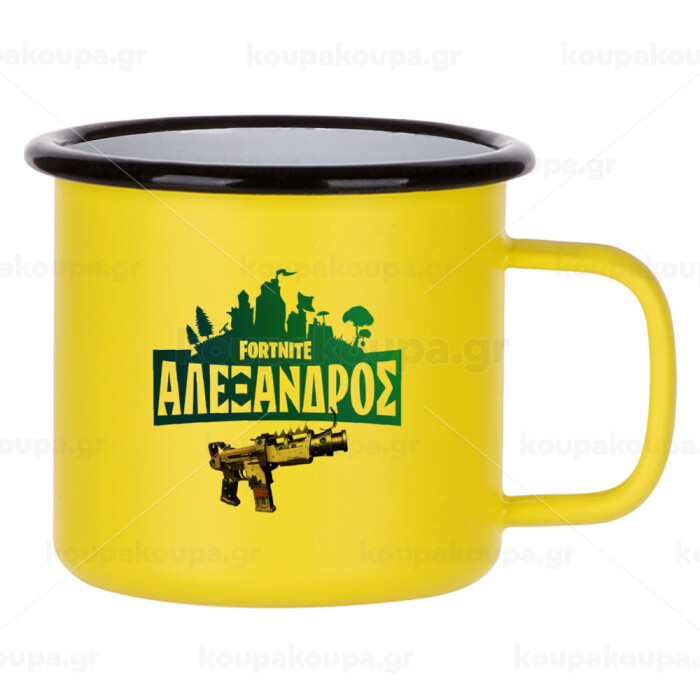 Fortnite with gun με το όνομα σου, Metallic enamel MATT Yellow cup 360ml