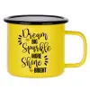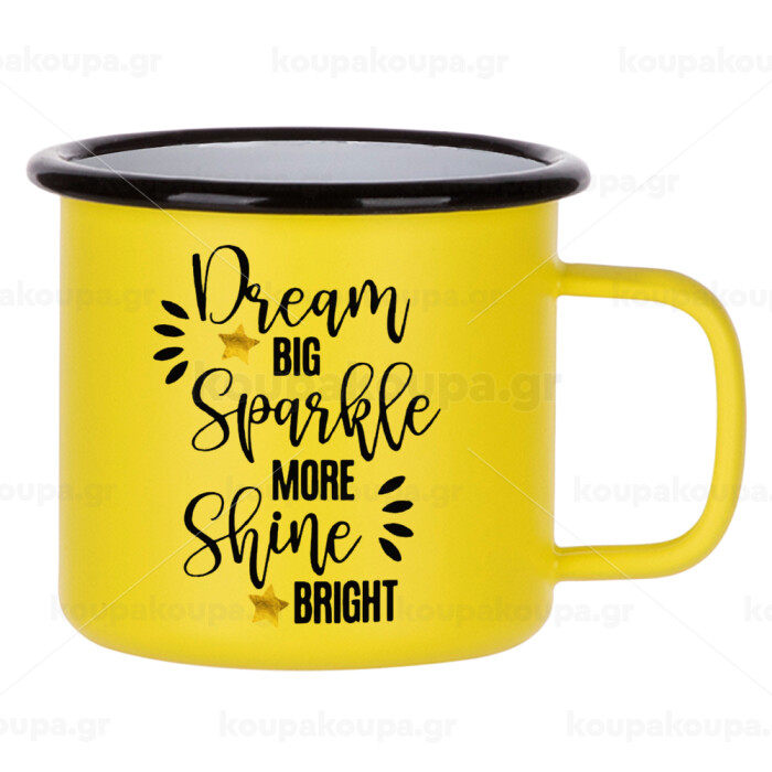 Dream big, Sparkle more, Shine bright, Metallic enamel MATT Yellow cup 360ml