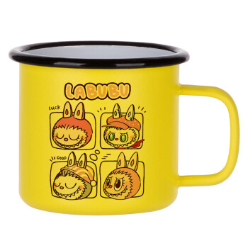 Labubu pink, Metallic enamel MATT Yellow cup 360ml