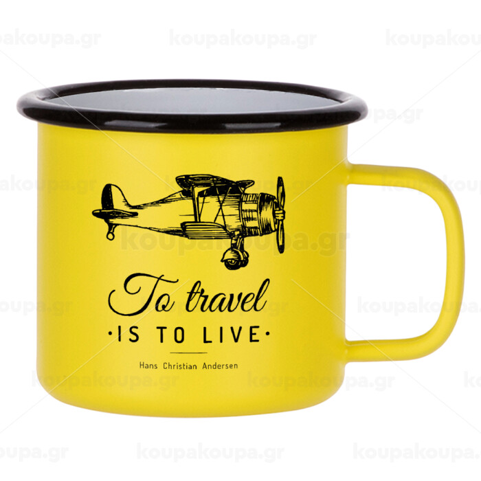 To travel is to live, Metallic enamel MATT Yellow cup 360ml