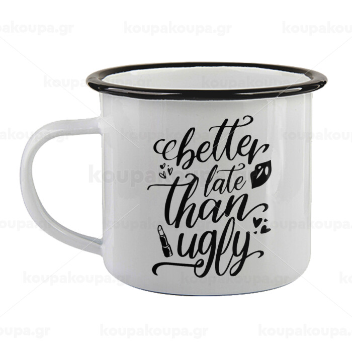 Better late than ugly, Κούπα εμαγιέ με μαύρο χείλος 360ml