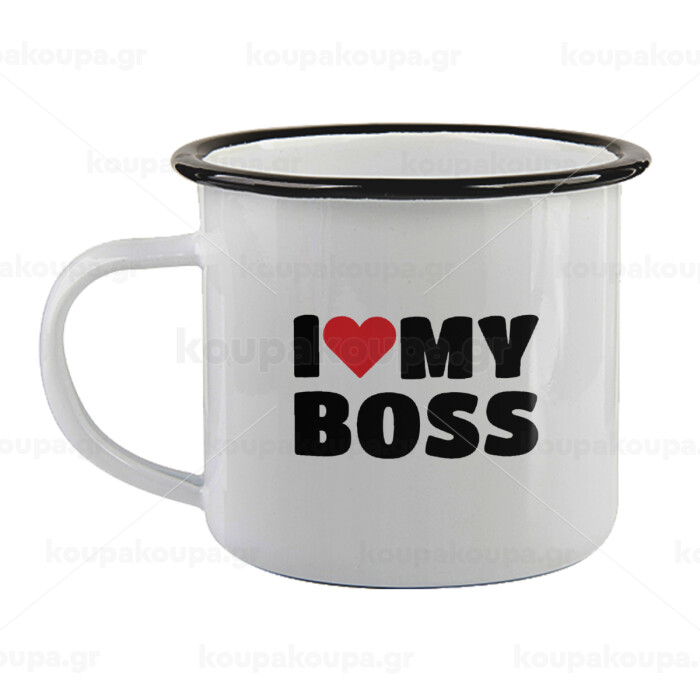 I LOVE MY BOSS, Κούπα εμαγιέ με μαύρο χείλος 360ml