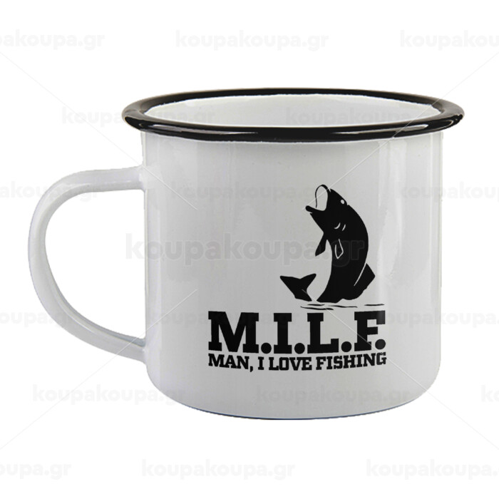 M.I.L.F. Mam i love fishing, Κούπα εμαγιέ με μαύρο χείλος 360ml