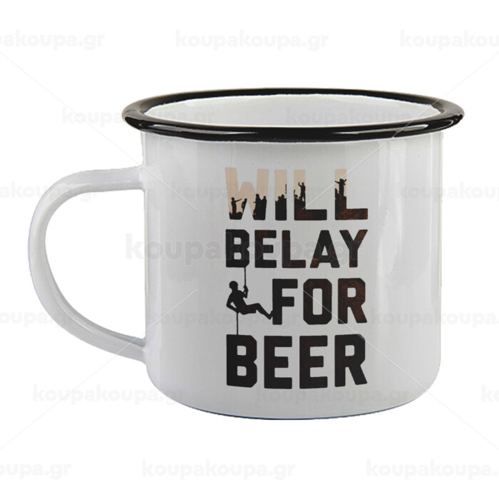 Will Belay For Beer, Κούπα εμαγιέ με μαύρο χείλος 360ml