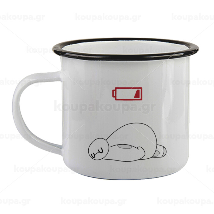 Baymax battery low, Κούπα εμαγιέ με μαύρο χείλος 360ml